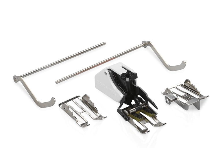 Den justerbara linjalfoten #72 / #72S kan nu väljas när du broderar med tillägg för garn. Broderiområdet anpassar sig därefter. Dessa tillbehör finns som tillval.