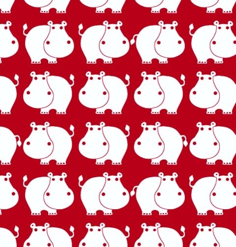Vita flodhästar på röd bakgrund