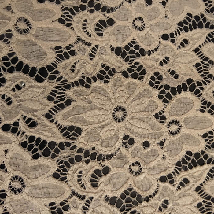 En mycket fin spets i stretchig polyester, stretchen är på längden.