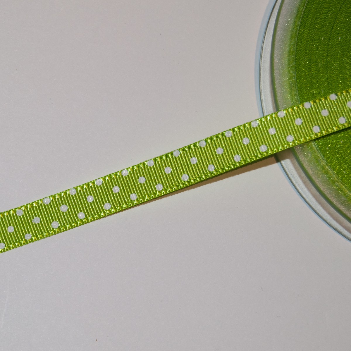 Ett tuskaftsvävt modeband med ett fint tryckt, prickigt mönster. Passar både som dekorationsband enskilt eller på kläder m.m.
