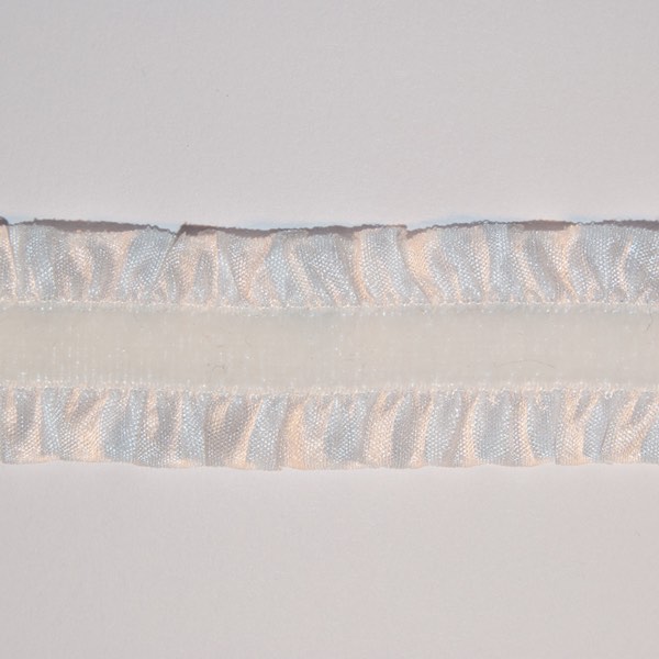 Ett elastiskt sammetsgummiband med volang på båda sidorna i tunn organza.