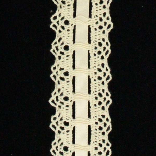 En fin bomulls mellanspets som påminner om knyppling på ett gammaldags sätt.